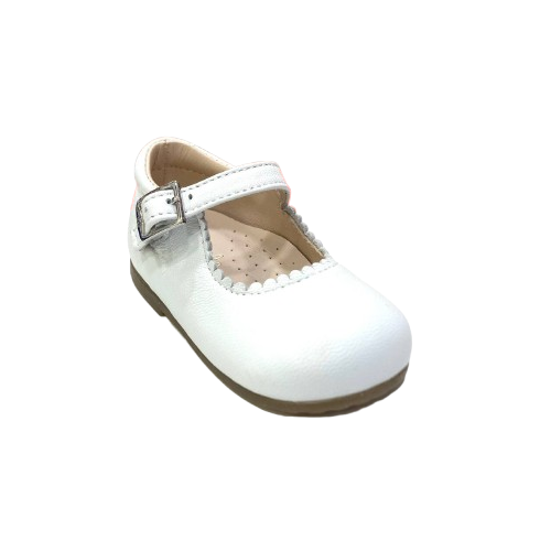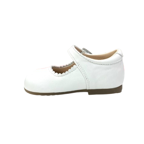 Delicata ballerina in pelle naturale, perfetta per i primi passi della tua bambina. Il tallone rinforzato garantisce stabilità e supporto durante la fase di apprendimento della camminata, proteggendo il piedino in sviluppo. Realizzata con materiali morbidi e traspiranti, assicura comfort durante tutto il giorno. La suola flessibile favorisce il movimento naturale, mentre la pelle di qualità si adatta dolcemente al piede. Ideale per i genitori che cercano scarpe eleganti e funzionali per questa tappa importante della crescita.