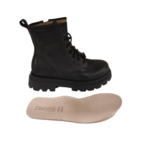 Stivaletto in pelle dotato di chiusura con lacci e zip, perfetto per garantire comodità e facilità di utilizzo.
