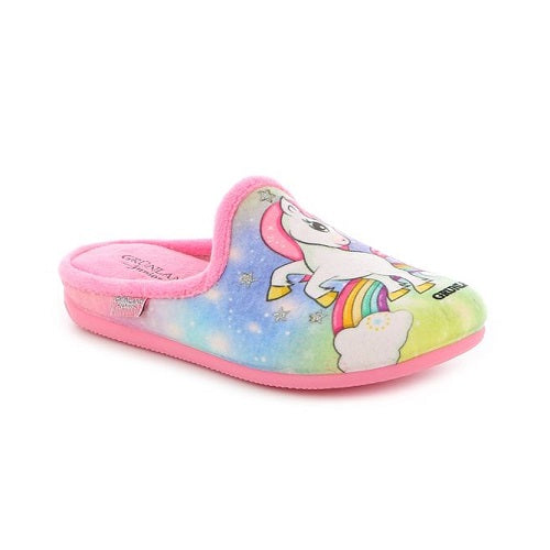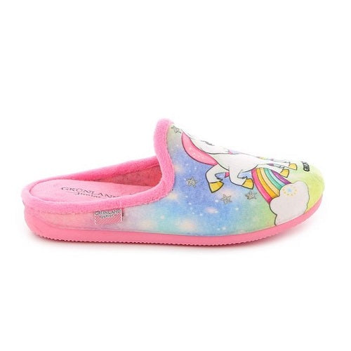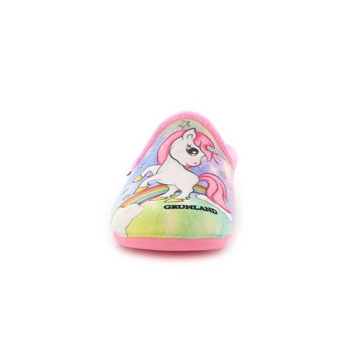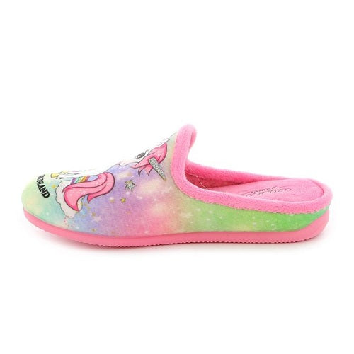 Morbide, calde, confortevoli, alla moda e divertenti! I piedi dei più piccoli staranno al calduccio per tutto l'inverno con questa pantofola aperta in velluto con stampa unicorno