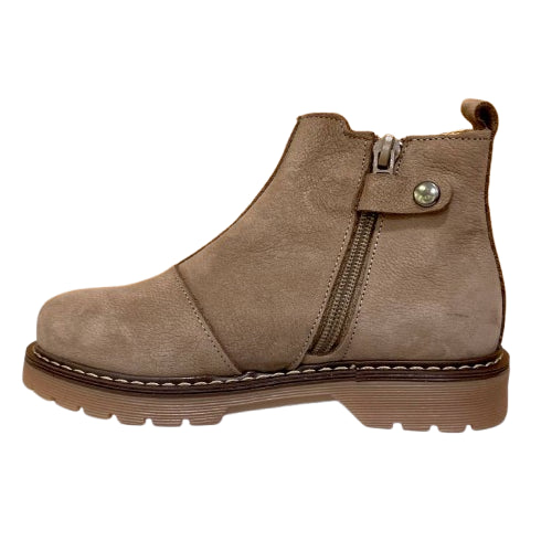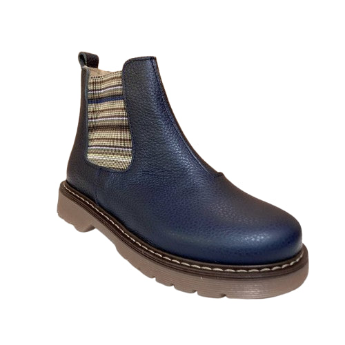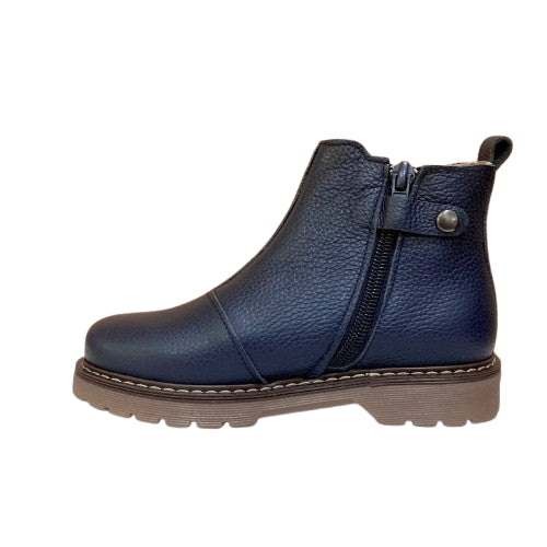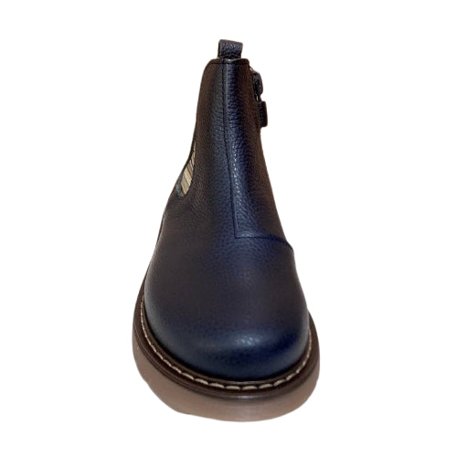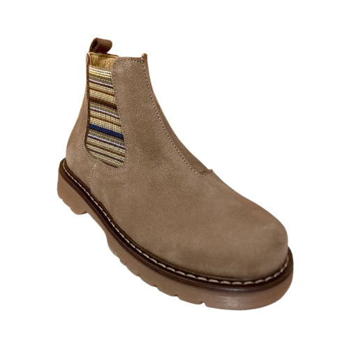 Stivaletti beatles realizzati in pelle nella variante blu e in camoscio nella tonalità beige, dotati di zip per una calzata comoda e pratica.