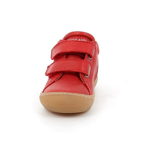 Scarpa primi passi in morbida pelle dotata di chiusura a strappo per una vestibilità semplice e sicura.