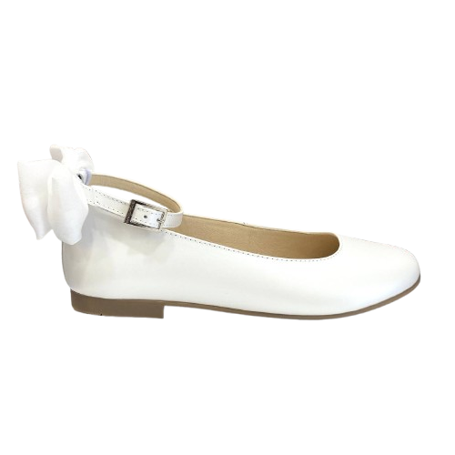Elegante ballerina in pelle che unisce stile e praticità: il fiocco removibile ti permette di personalizzare il look secondo l'occasione, mentre il cinturino alla caviglia garantisce una calzata sicura e confortevole. Perfetta per le piccole ballerine che desiderano un tocco di raffinatezza in ogni momento della giornata.