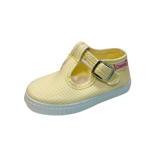 Due occhi in cotone naturale dai caratteristici quadretti gialli. La gomma profumata garantisce freschezza e comfort durante tutto il giorno. Un modello classico e versatile, perfetto per bambini che cercano stile e praticità. Ideale per l'uso quotidiano, combina qualità artigianale e design senza tempo.
